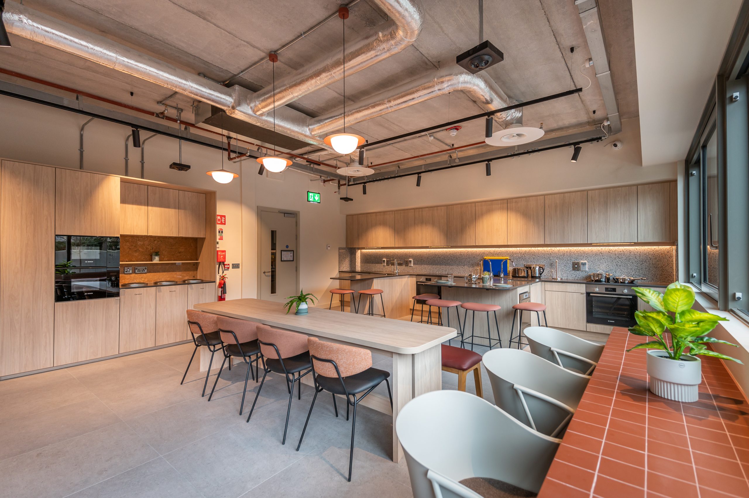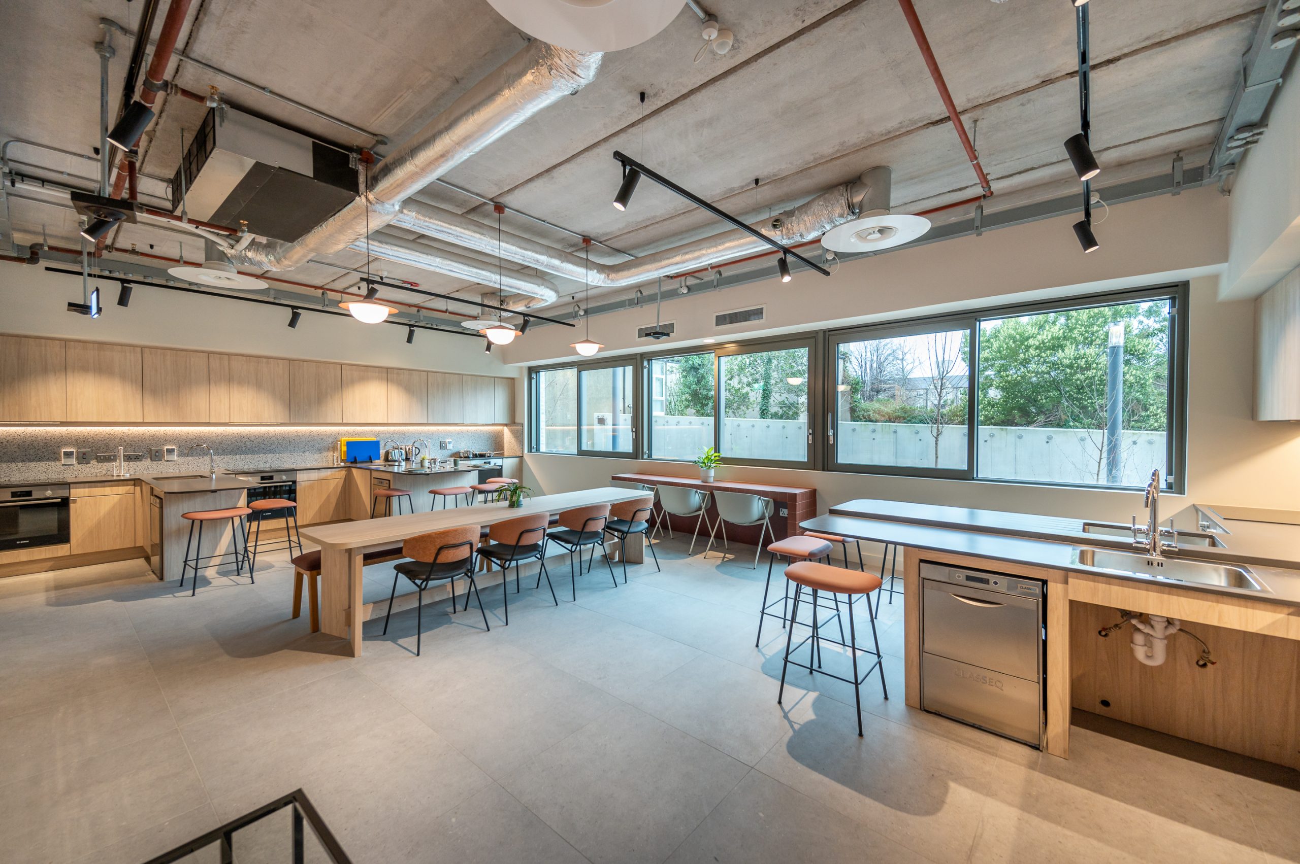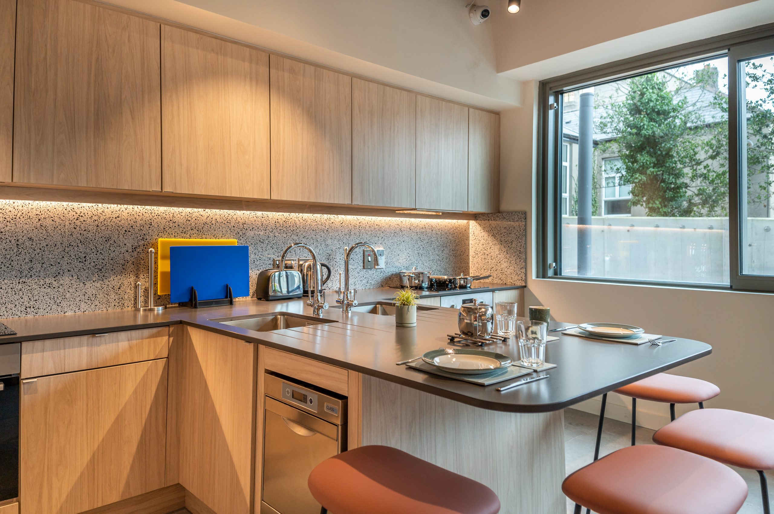 You’ll have everything you’d find in your home kitchen including induction hob, oven, pots, pans, baking tins, utensils and much more. Each kitchen pod has its very own high speed dishwasher which has a 3 minute wash cycle – so no more disagreements about dirty dishes!